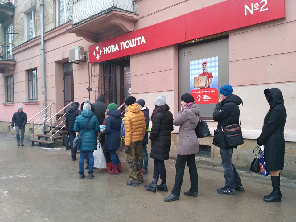 Кількаметрові черги можна побачити біля відділення "Нової пошти"№2 в центрі Тернополя. Охочих відправити святковий пакунок так багато, що людям доводиться стояти у черзі на вулиці.