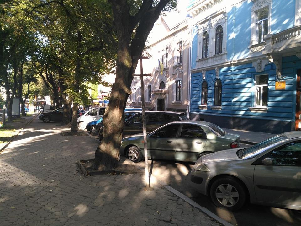 Водії на місці знаку почали ставити автомобілі. Про інцидент повідомив на своїй сторінці у facebook активіст Святослав Лайкар.